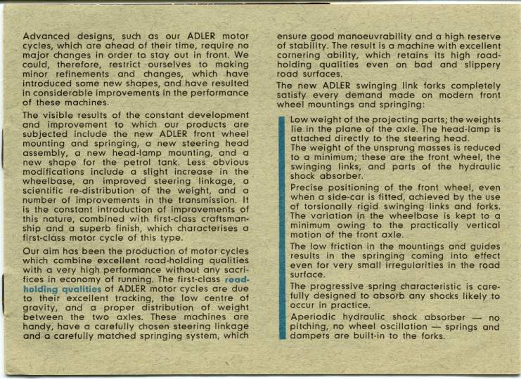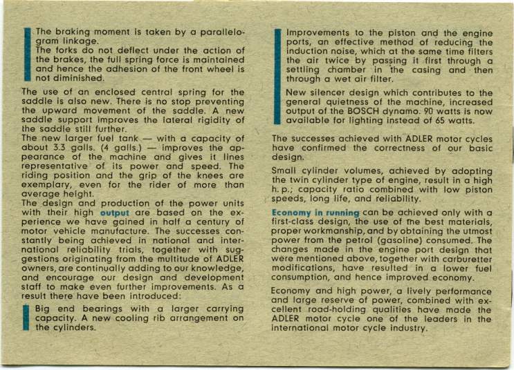 The Adler owners in Australia have had articles printed in two of the leading motorcycle magazines. Further information can be provided on these stories.