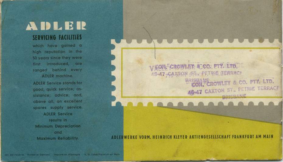 In issue No 11 ( Jan/Feb 2009 ) of Old Bike Australasia, there was a 5 page story on the Adler with reference to it's history in Australia.