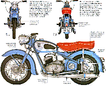 Engine: Electrical Equipment: Gearbox and drive: Chassis: Tyres: | Brakes: Fuel tank: Fuel consumption: Gross weight: Equipment: Accessory: Price: Exhaust pipes: |